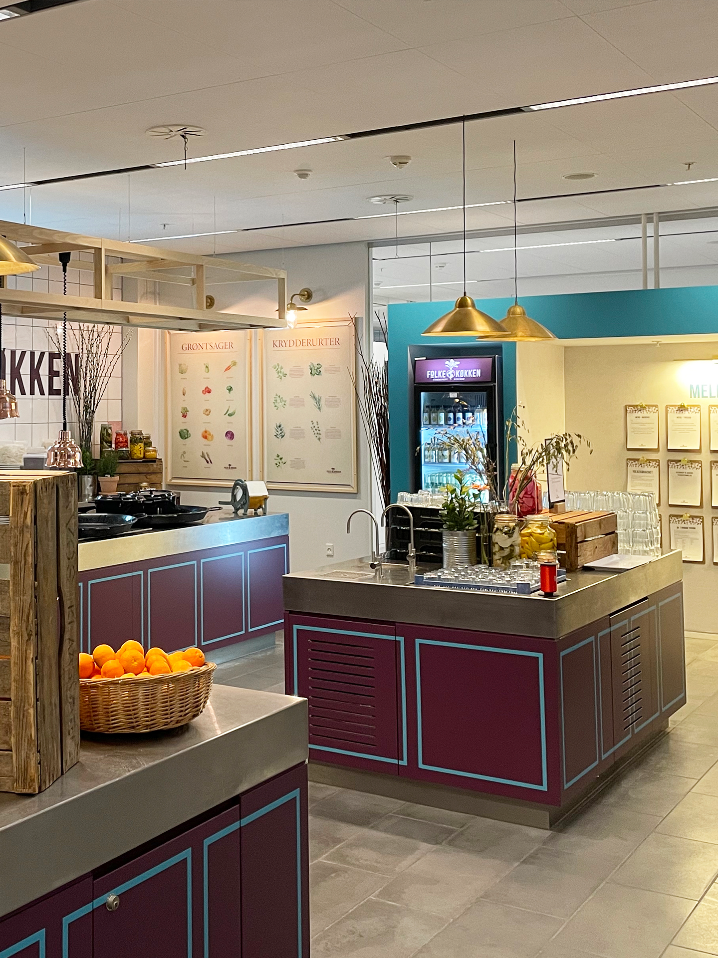 Med lokalets faste rammer og fællesskabet for øje har de krøllede hjerner i vores kreative afdeling fortalt historien om Folkekøkken ned til den mindste detalje, mens vores dygtige praktikere sikrede, at de kreative penselstrøg kunne fungere i virkeligheden.