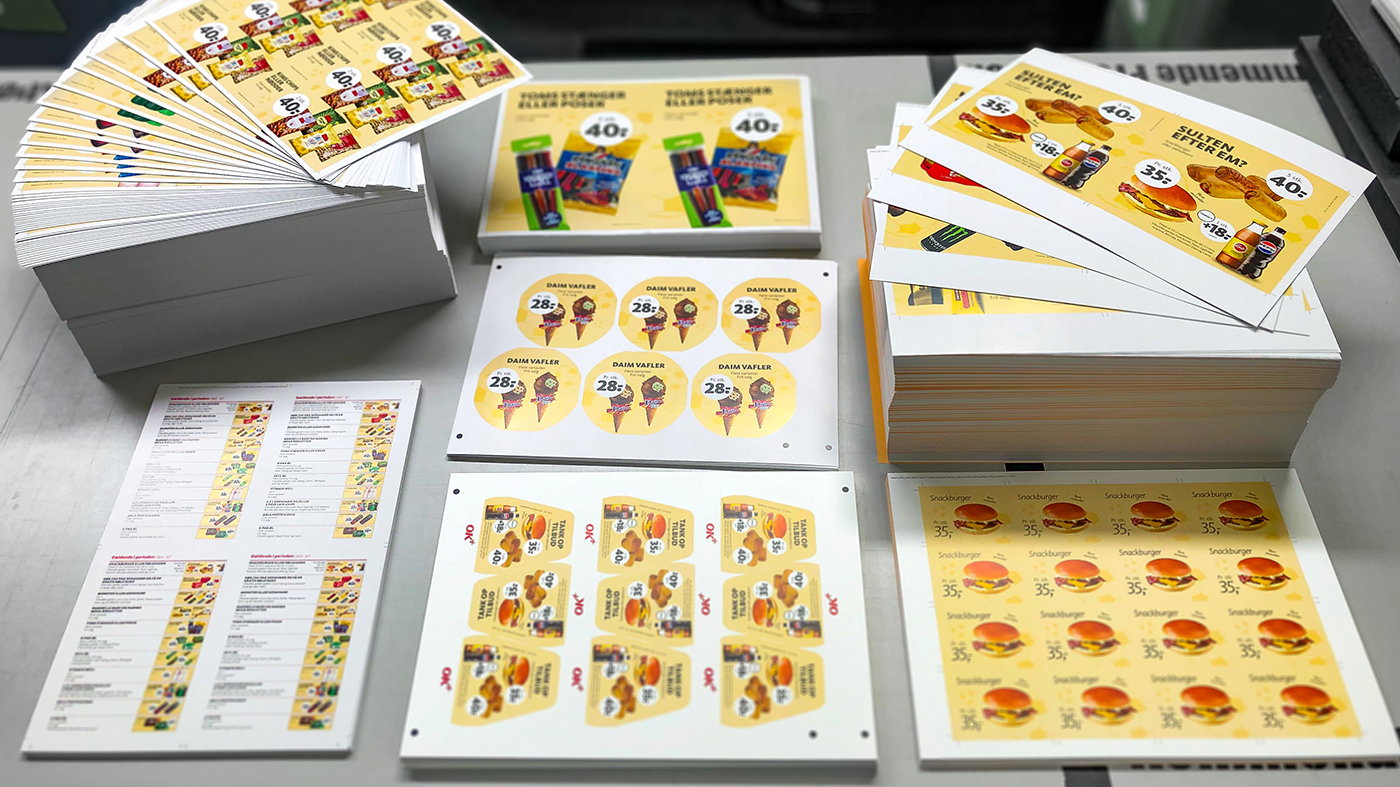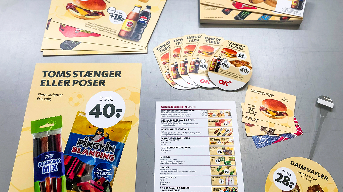 Hos OK Plus ønsker de at opnå kontinuerlig synergi på tværs af deres 67 lokationer i Danmark. Derfor gennemfører de årligt 17 centrale kampagner med faste printede kampagnematerialer, der ikke kun skal styrke genkendeligheden blandt kunderne og sikre, at alle lokationer kører de samme tilbud. De skal også øge salget på den enkelte lokation – eksempelvis på sæsonprodukter såsom drikkevarer og is i sommerperioden.